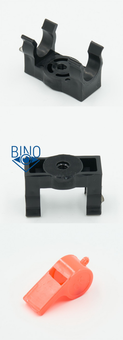 Штативное крепление для БПЦ5 пластиковое, цепляется за центральную штангу, в основании фото-резьба глубиной 7мм. Бинокль крутится штангой внутри этого крепления, его не получается зафиксировать. Устанавливать крепление лучше на плоскую площадку, чтобы у бинокля была точка опоры хотя бы для одного тубуса. Для того, чтобы наблюдать на Меж Зрачковом Расстоянии (далее МЗР) 65мм бинокль пришлось ставить "вверх ногами", тыльной стороной с проушинами вверх.