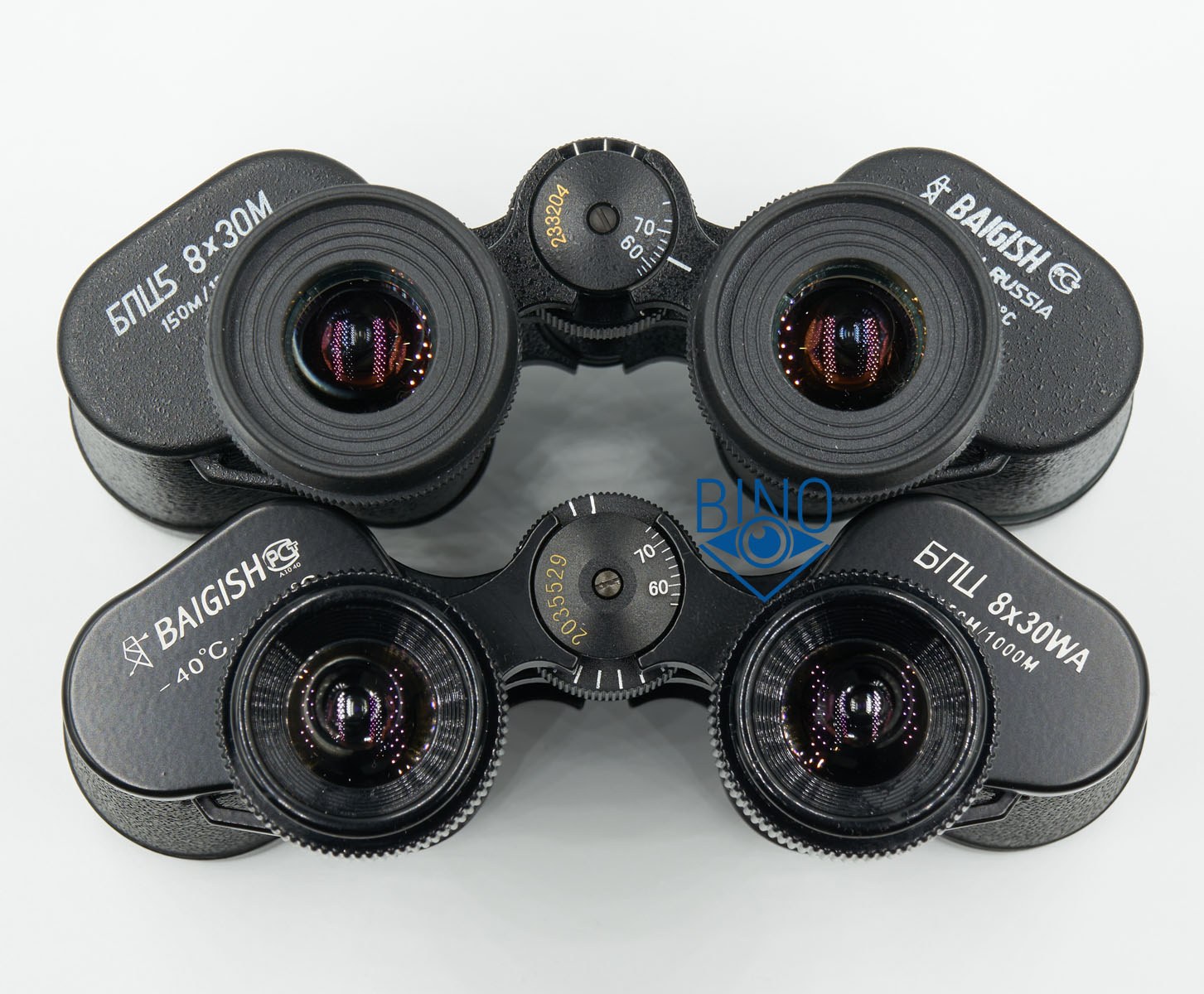 В текущем производстве бинокли заметно отличаются внешне. Хотя габариты у них практически идентичны, китайцы хорошо скопировали Байгыш. Отличие видно только в диаметре центральной штанги.