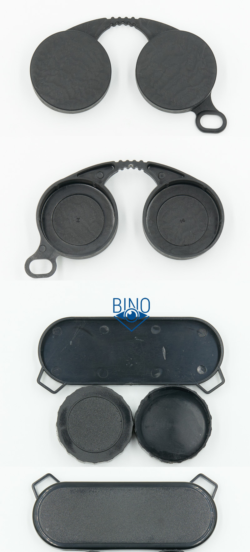 У БПЦ5 в комлекте только крышки на окуляры (рейнгард на верхнем фото). Они выполнены из мягкого пластика, отливка грубоватая с заусенцами, как и на штативном креплении, похожа скорее на домашнюю печать на 3Д-принтере, чем на промышленное производство. По внутреннему диаметру крышки шире наглазников окуляров, легко на них накидываются. Но садятся не до конца, упираются в выступающий буртик с насечками вокруг наглазников. Если придавить сверху, то с трудом садятся ниже, держатся хорошо и не спадают. Если это так и задумано, то это очень правильное решение по реализации рейнгарда.