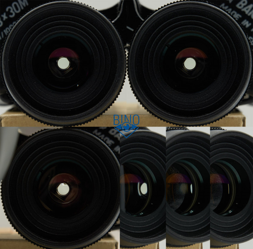 Края линз объективов нечернены у обоих биноклей. Внутренности тубусов и призменная диафрагма прокрашены у БПЦ5; у копии стенки внутри без прокраса, плюс на призменной диафрагме есть маркировка YP.