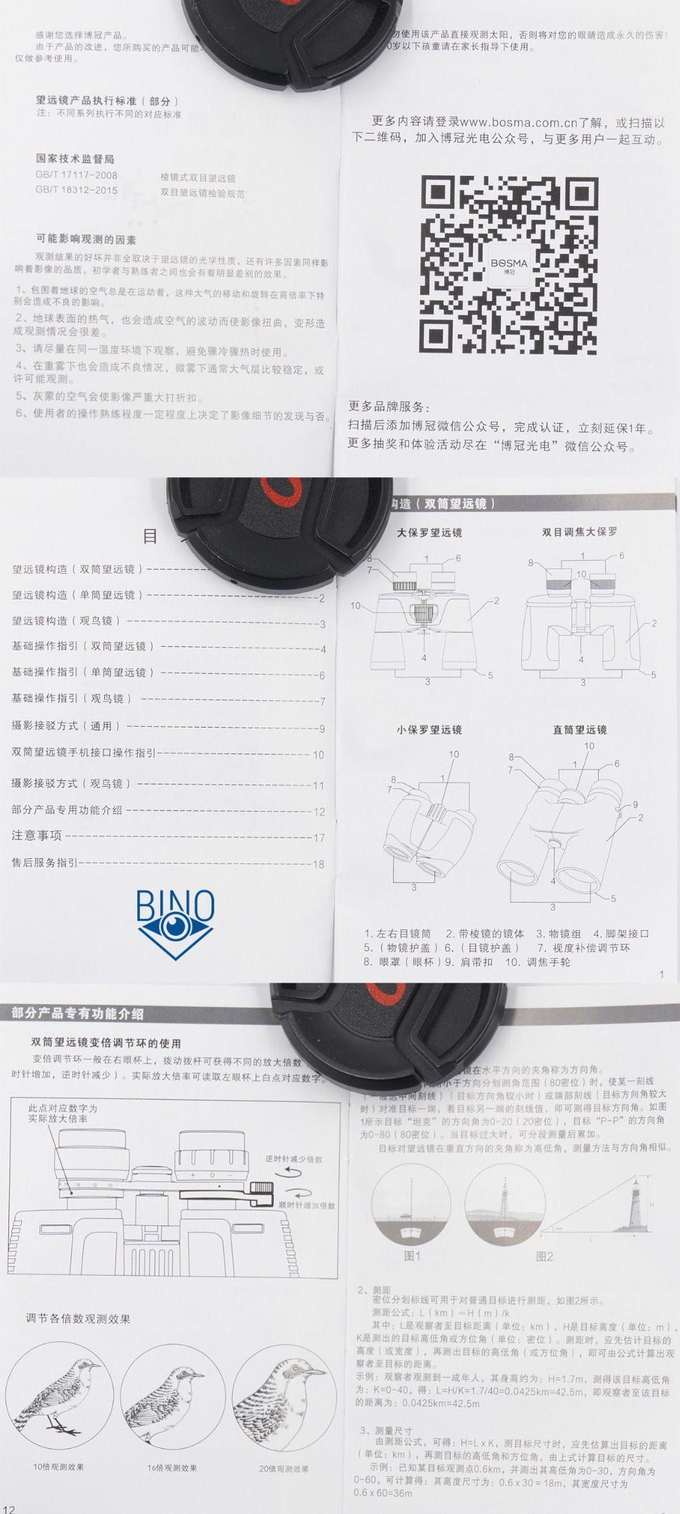 Инструкция полностью на китайском языке, выглядит универсальной для разных линеек биноклей. Несколько фото из неё.