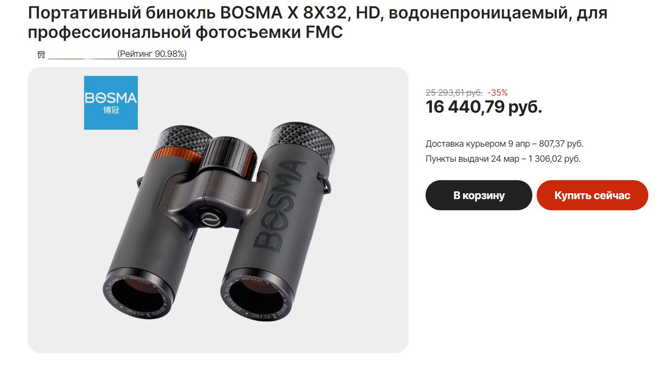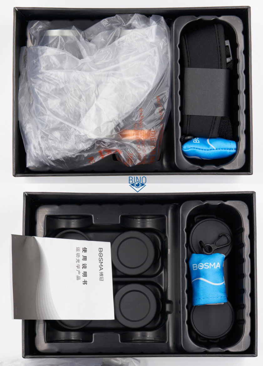 По внешнему виду и материалам Bosma выглядит, как обычный китайский бинокль, похожа на Hawke Nature Trek и Athlon Cronus. С тыльной стороны есть подобие серийного номера, но столько экземпляров вряд ли могли выпустить.