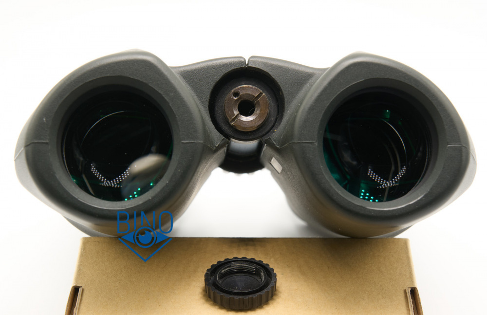 У бинокля есть штативное отверстие глубиной 38мм, закрыто пластиковой крышкой. Резьба на 6мм вглубь. Между тубусами легко помещается обычная стойка.