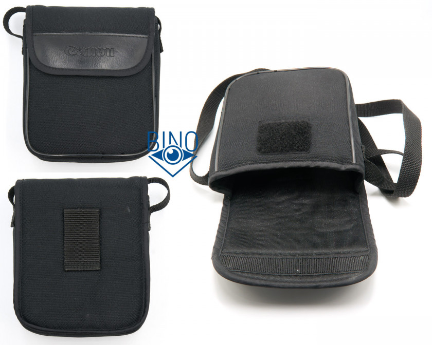 Комплектная сумка мягкая, с небольшим уплотнением стенок. Крышка закрывается на липучку, до которой она достаёт даже над биноклем с полностью выкрученными наружу окулярами. У сумки есть отдельный пришитый ремешок, шириной 18мм. С тыльной стороны расположена лямка для крепления на ремень шириной 50мм.