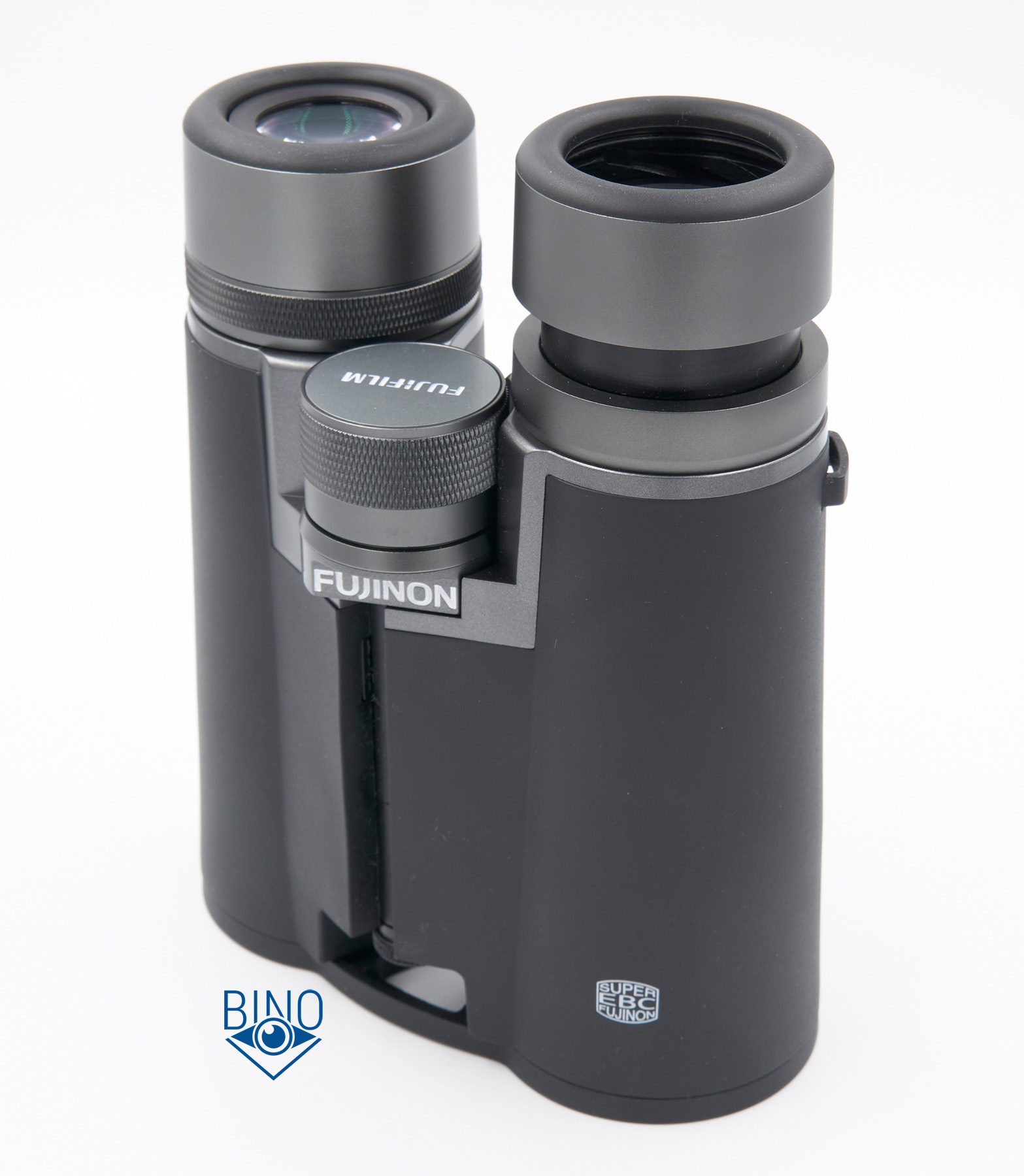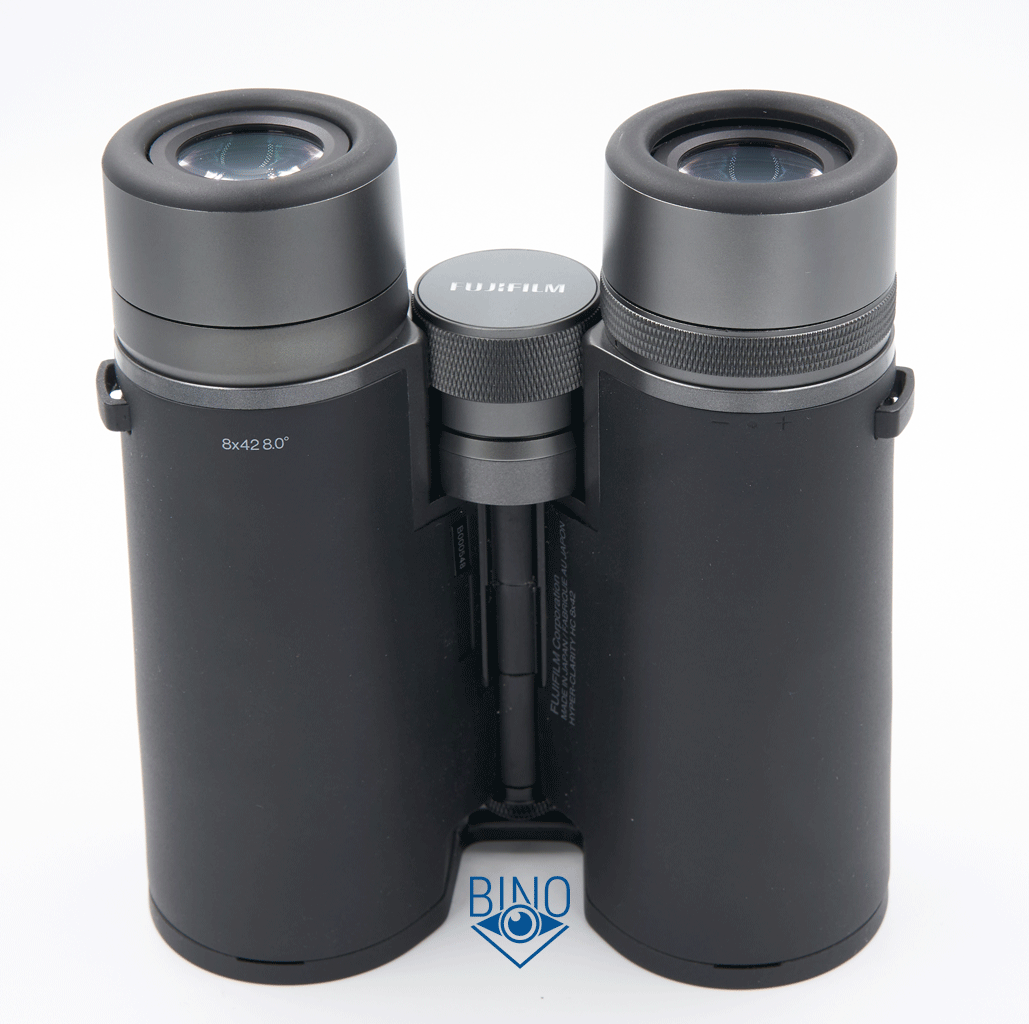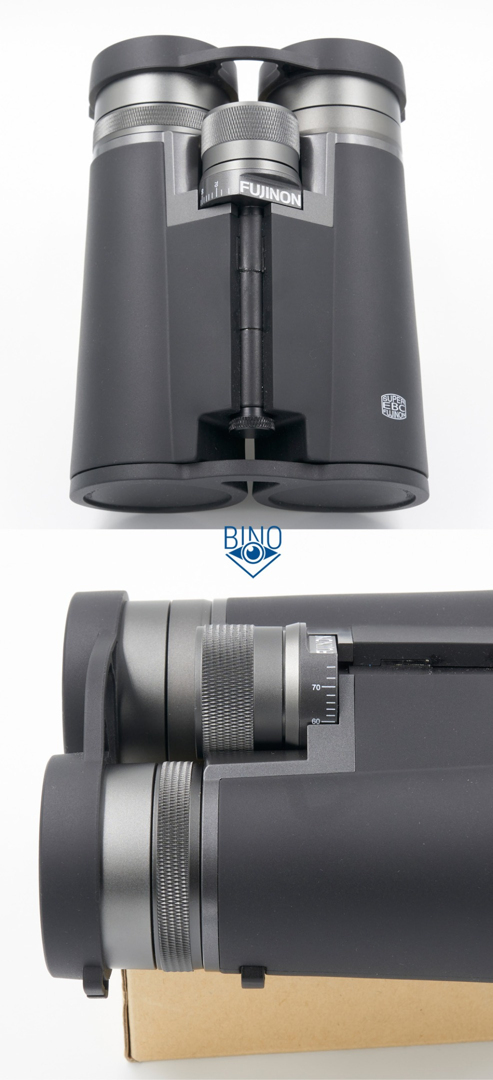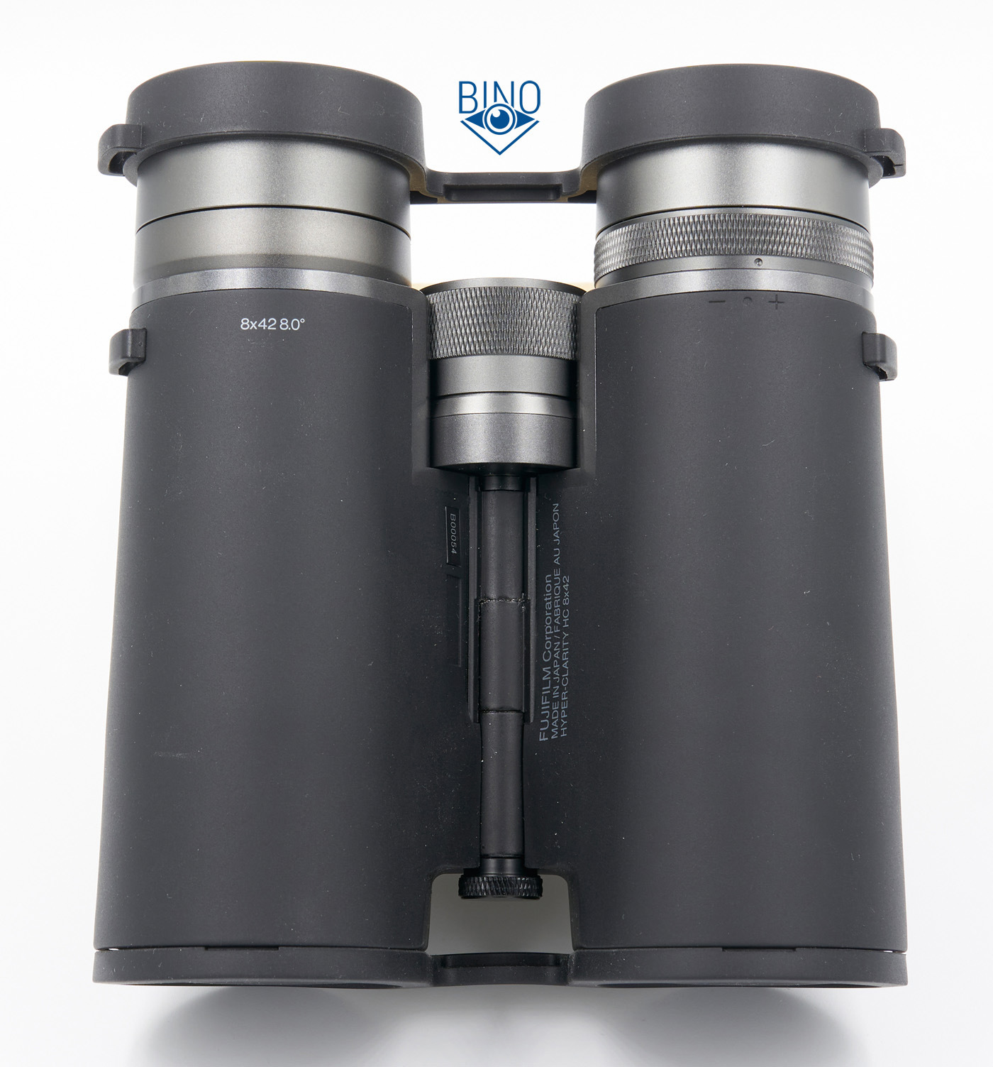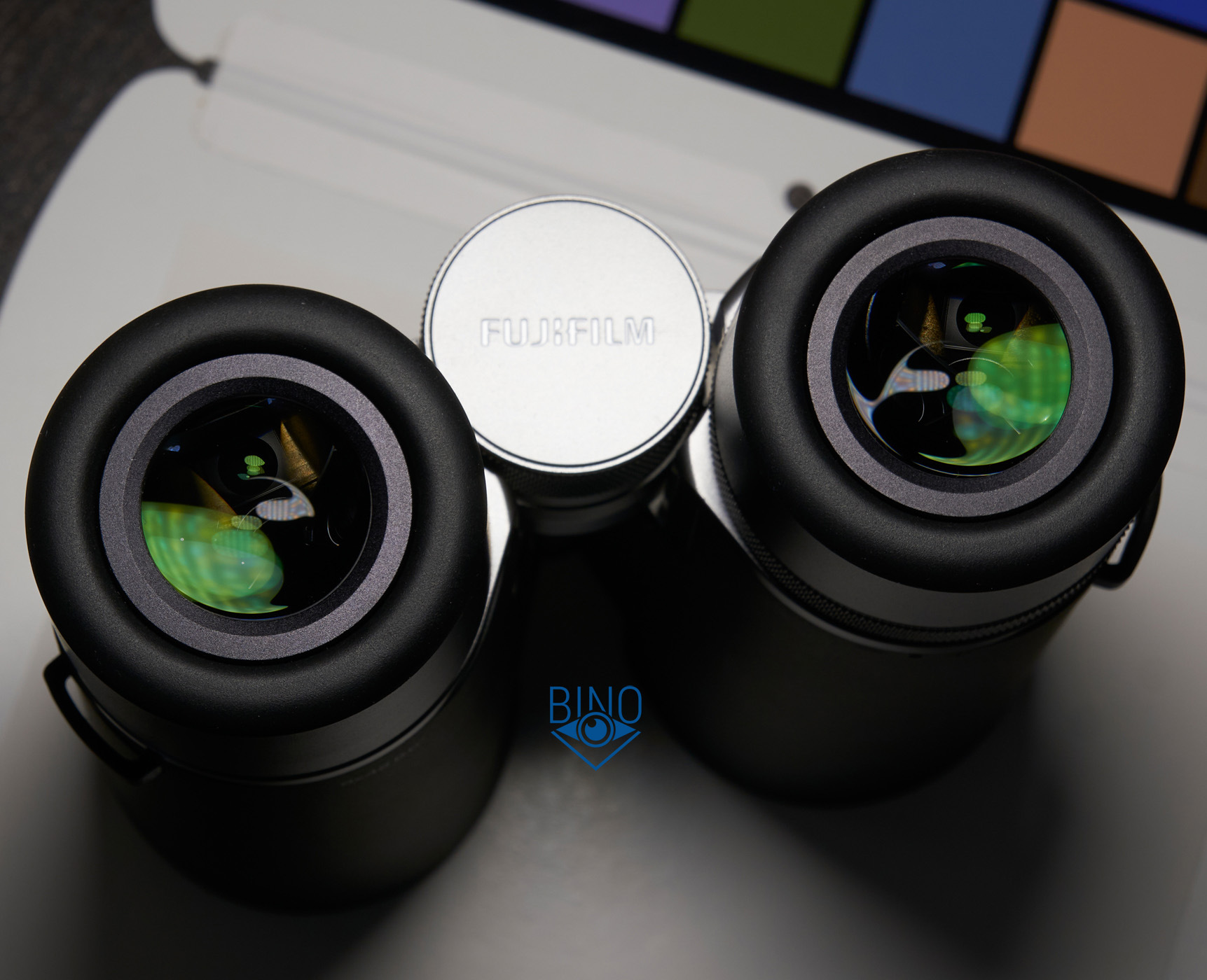 Тубусы легко двигаются относительно друг друга, выставленное Меж Зрачковое Расстояние (далее МЗР) почти не держится и часто сбивается (при смене диоптрийной коррекции или вытаскивании из сумки). Диапазон МЗР 57-77мм. Интересно решение по маркировке выставленного значения МЗР: это основание колеса фокусера с плоской поверхностью и гравировкой FUJINON. Двигается только правый тубус и своим краем открывает разметку. Разметка МЗР на бинокле - действительная: 60 - 61, 64 - 65, 70 - 71. Отличие на 1мм от реального значения оказалось очень удобно: я ставлю 64 по разметке и получаю мои 65мм.