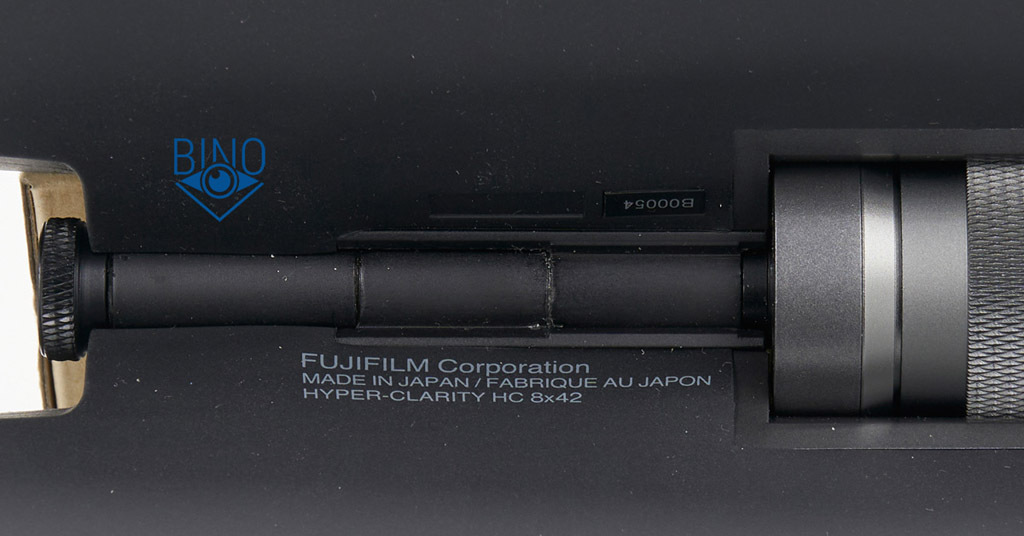 С тыльной стороны бинокля у моста есть бирка с серийным номером. Вполне может быть выпущено 500 экземпляров. На другом тубусе указан производитель FUJIFILM, и два раза указано место производства на английском MADE IN JAPAN и французском языках FABRIQUE AU JAPON, плюс название модели бинокля.