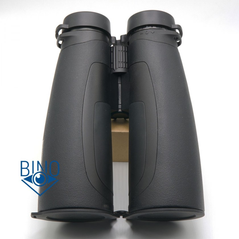 Бинокль поставляется в большой коробке габаритами ДхШхВ 380х230х92мм и полным весом около 2,3кг. Коробка чёрного цвета с фирменными логотипами, на одной стороне есть наклейка с наименованием модели и серийным номером, похоже, что коробка универсальная под х50-х56 модели. Внутри коробки одно отделение, бинокль размещён в отдельном ложементе из пенополистирола. Слева от него находится сумка со всеми аксессуарами.