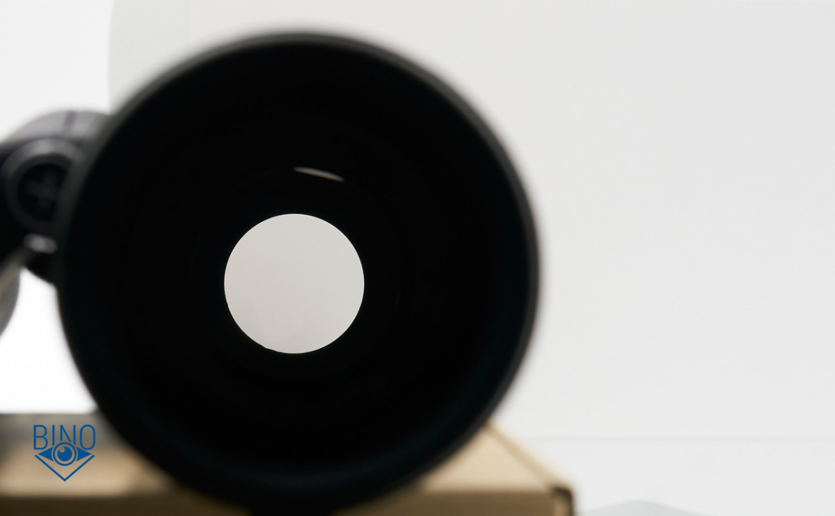 Выходной зрачок диаметром около 5,2мм; почти круглой формы. Затенение вокруг среднее, есть бликование на внутренностях бинокля. Хорошо видно бликование снизу, если направить бинокль в сторону Солнца.