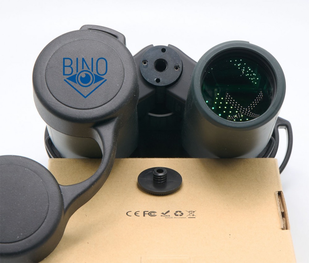 По внешнему виду и материалам бинокль вполне выглядит на свою стоимость. C внутренней стороны моста левого тубуса есть шильдик с серийным номером и указание места производства (MADE IN CHINA).