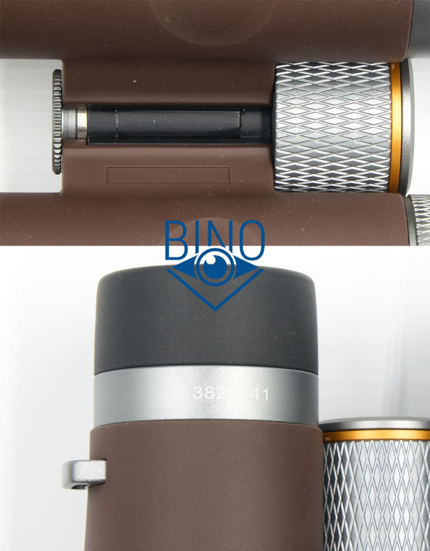 По внешнему виду бинокль выглядит на свою стоимость, но тактильно более простой. C внутренней стороны моста правого тубуса есть площадка под шильдик с серийным номером и местом производства, которая есть на SRBC, но отсутствует на Aglaia. Серийный номер вынесен на декоративное кольцо под левым наглазником.