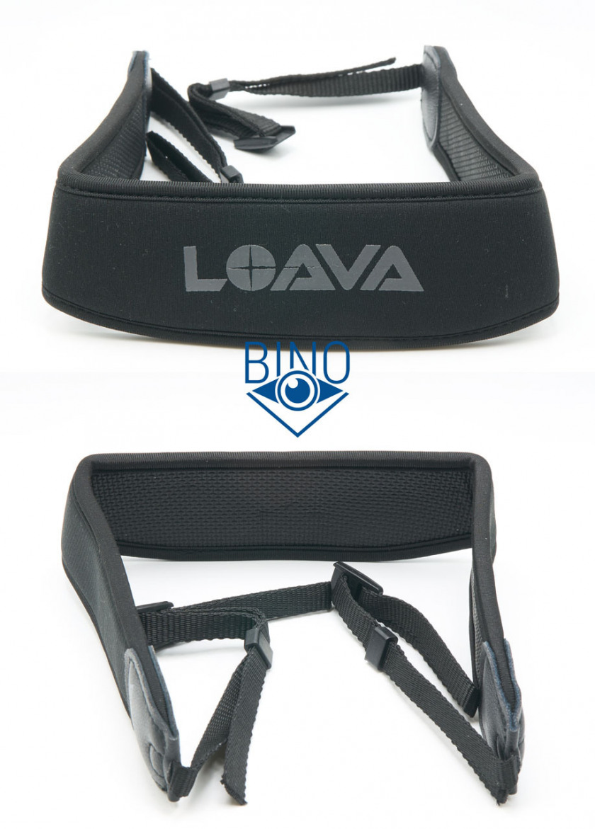 Нашейный ремешок неопреновый, похожий, но не точно такой же, как у SRBC. У Aglaia он шире, немного отличается использованным материалом и покрыт тканью только с наружной стороны. Ремешок хорошо тянется, шириной 56мм по центру в самой широкой части, толщиной около 6мм и длиной 50см без тесёмок. Этого ремешка достаточно для разгрузки шеи при ношении такого увесистого бинокля весом 855гр, но он всё равно хорошо чувствуется шеей и грудью при ходьбе.