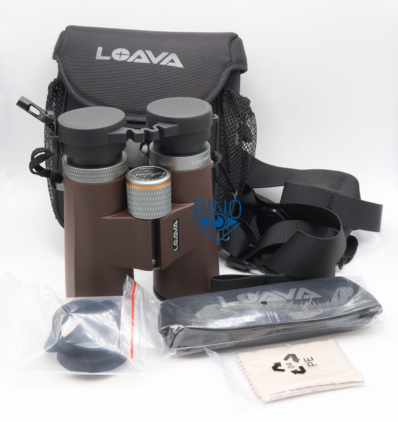 Комплект: бинокль, раздельные крышки на объективы (плюс одна запасная), сдвоенная крышка на окуляры (рейнгард), нашейный ремень, чехол + харнесс (разгрузка на спину), защита от боковой засветки на наглазники.