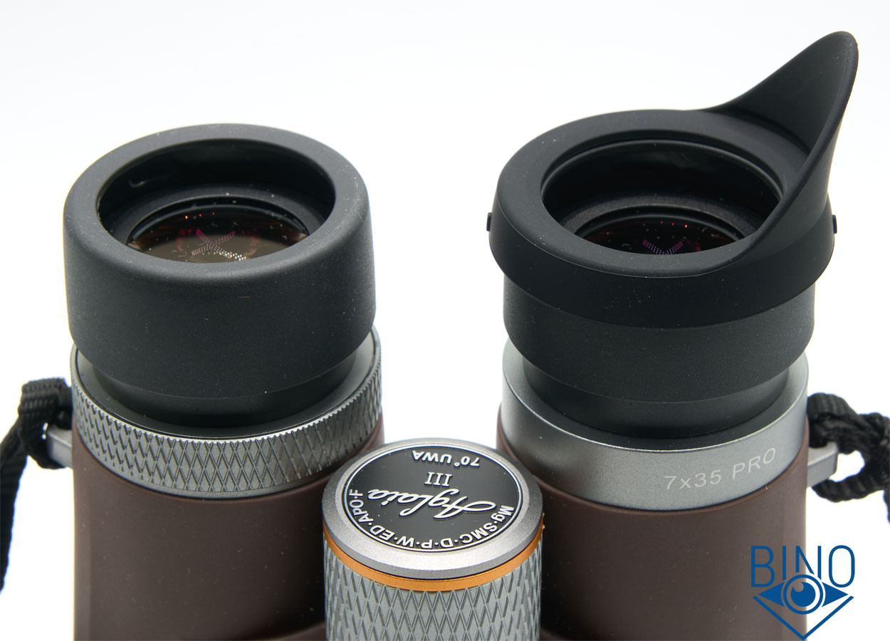 Окулярное поле зрения у Aglaia III 7x35 очень хорошее, около 68,4 градуса, в картинку великолепное погружение. Этому способствуют также более удобные (узкие) наглазники, чем у SRBC моделей (кроме версии 6х32).
