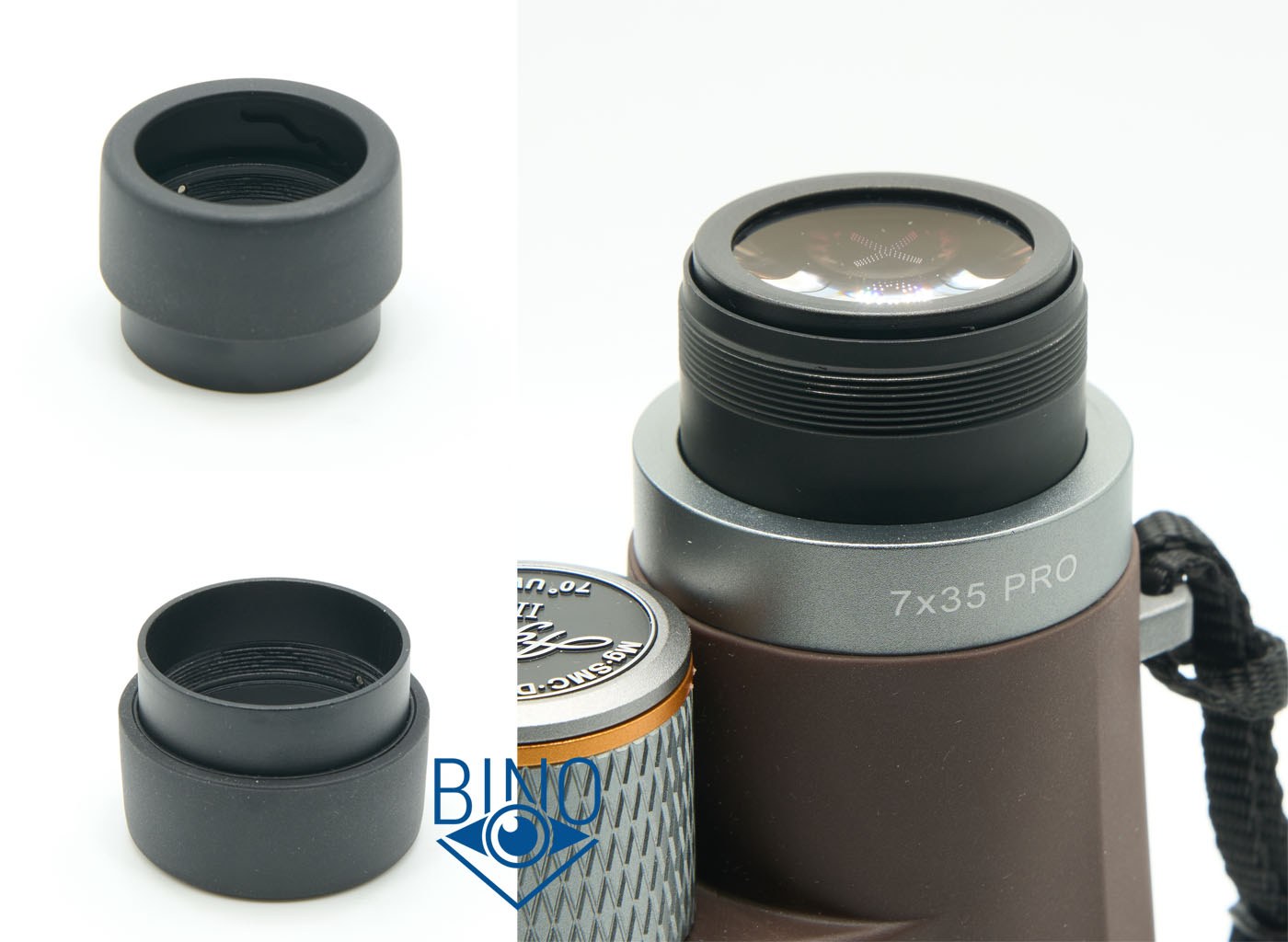 Держатель, похоже, универсальный, но вполне подходит по диаметру посадки на широкий наглазник окуляра этого бинокля.