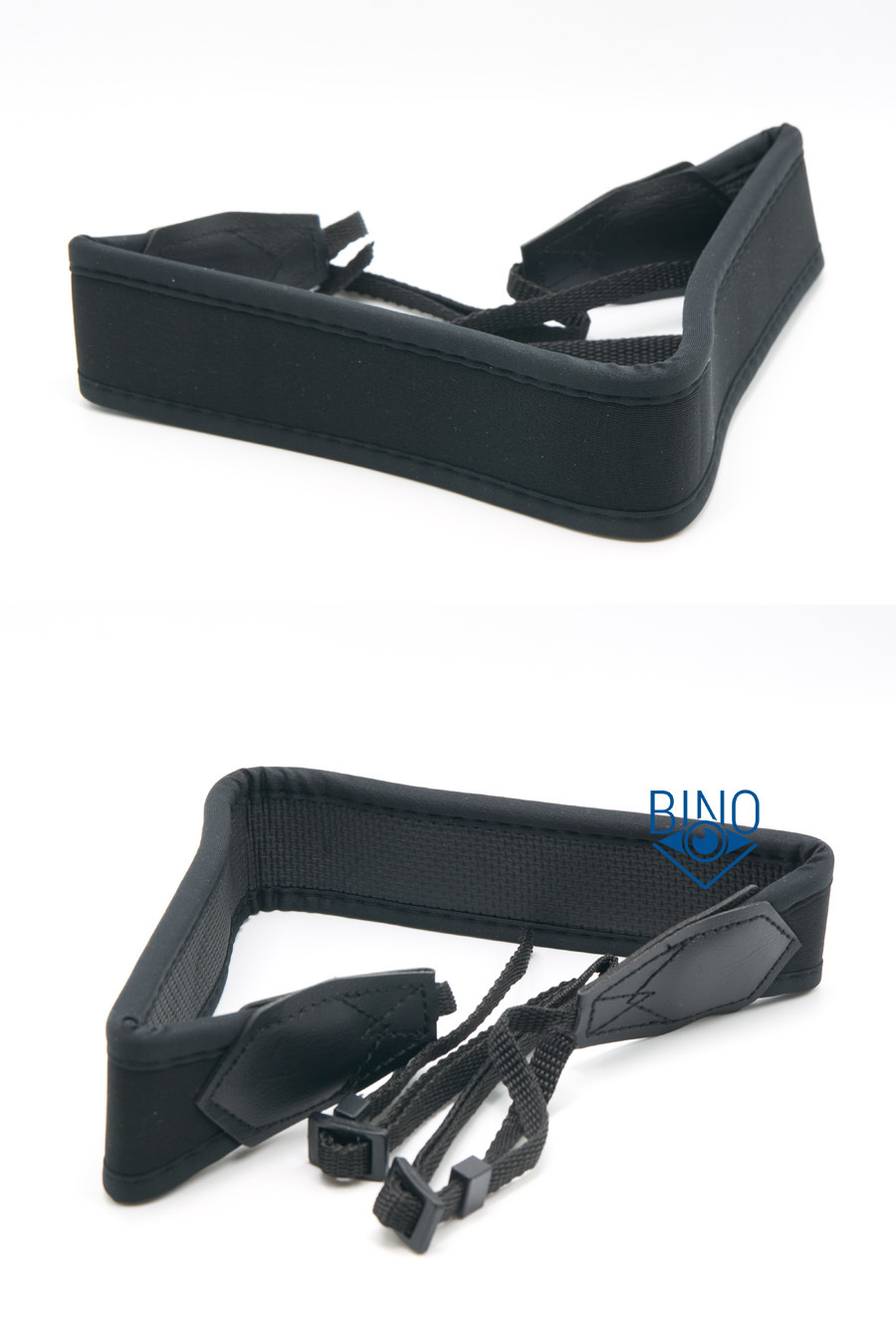 Нашейный ремешок неопреновый, простой по качеству, шириной 43мм и толщиной 7мм, покрыт тканью только с наружной стороны. Он нормально тянется и подходит для разгрузки шеи от веса этого бинокля (760гр). Тонкие тесёмки ремешка нормально продеваются в проушины, выполненные с внутренних сторон тубусов.