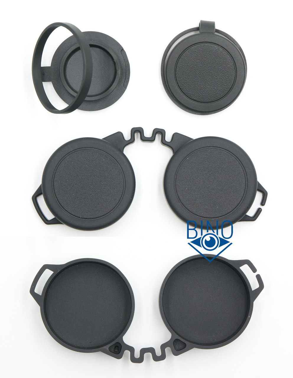 Крышки на объективы внутреннего зацепления, сбоку есть выступ для их открывания. Они плотно держатся и не спадают самопроизвольно. Крепление на тубусы выполнено через короткие полоски резины, они, похоже, не особо эластичные.