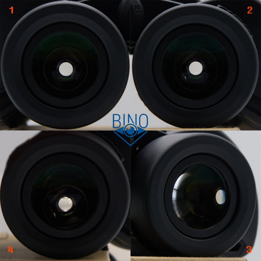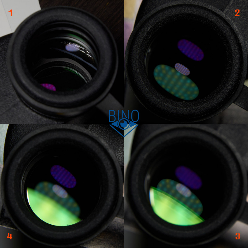 На фото выше (слева): 1 - выходной зрачок левого канала, 2 - вз правого канала, 3 - вз на краю (оценка виньетирования), 4 - имитация наблюдений в сторону Солнца (подсветил объектив сверху фонариком смартфона).