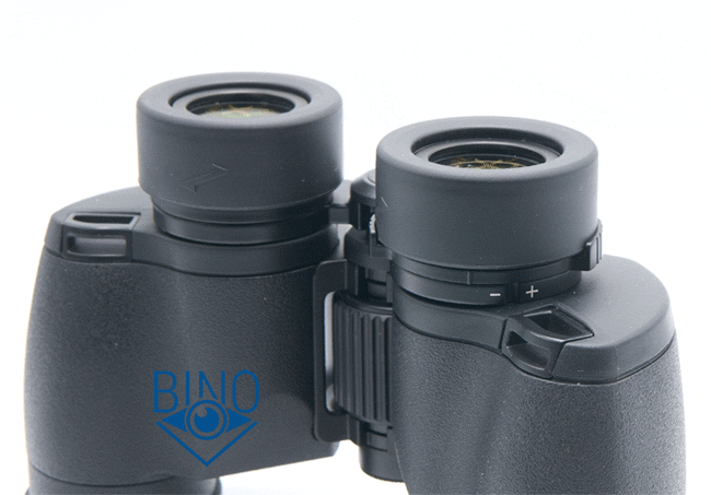 Диоптрийная коррекция выполнена на правом окуляре в виде двух выступов под большой и указательный пальцы, разведённые на 180 градусов. Вращение кольца диоптрийной коррекции тугое, без ступенек, в небольшом диапазоне на 25 градусов влево от нулевой метки и на 7 градусов вправо.