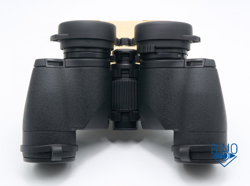 Корпус бинокля затянут твёрдой обрезинкой, которая не продавливается пальцем. Внешний вид у бинокля опрятный, все стыки аккуратные, материалы приятны тактильно, сравнимы со старой линейкой Порро биноклей Vixen Foresta. Обрезинка нормального качества, в отличие от упомянутого выше Levenhuk Sherman PRO, почти без запаха, везде плотно прилегает к корпусу, и даже верхняя призменная крышка обрезинена.