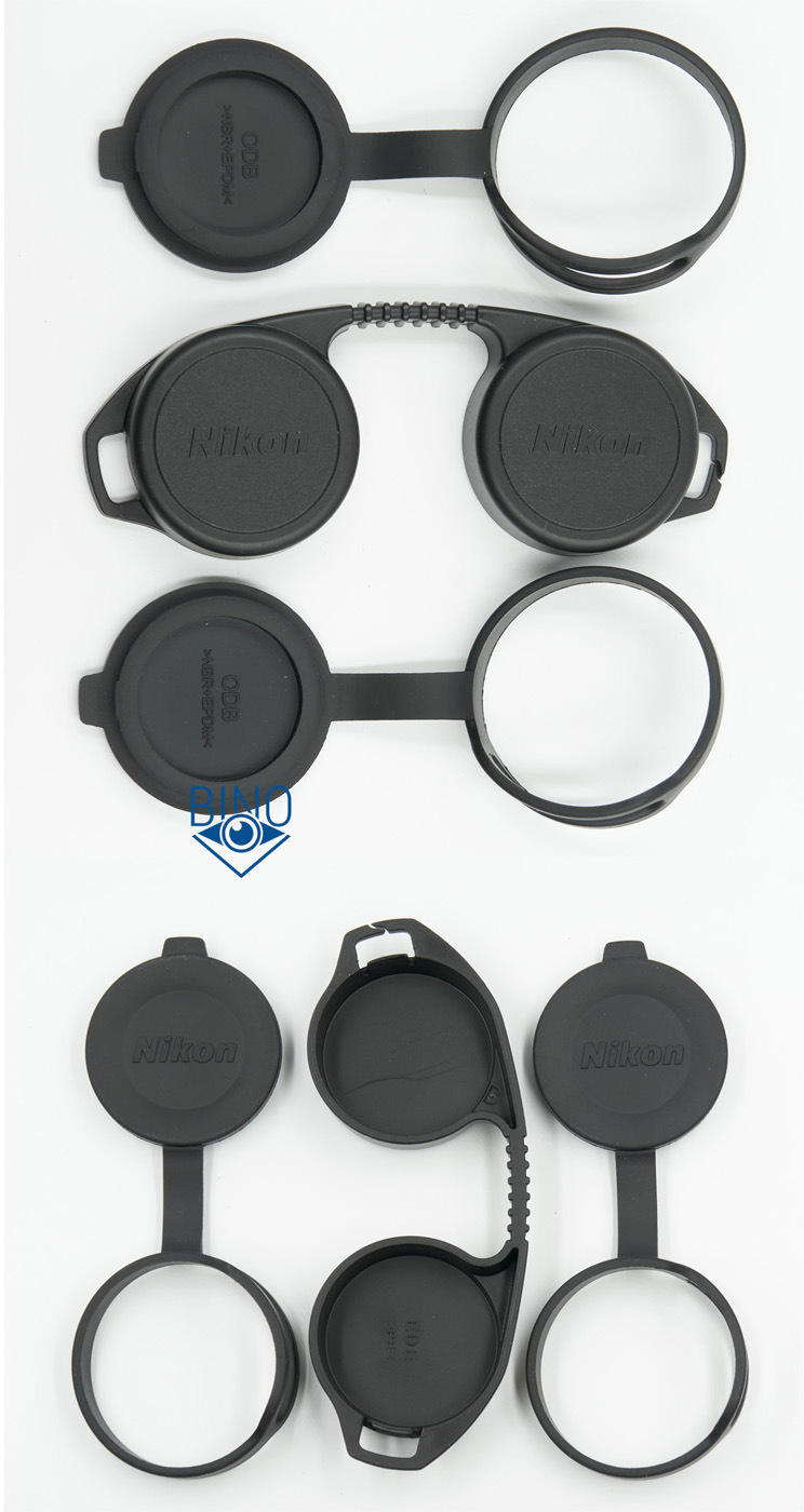 Крышки на объективы резиновые, вставные. Крепятся на тубусы через резиновые полоски. Резина у крышек мягкая, они плотно держатся внутри тубусов и не дубеют при низких температурах. Открытие сопровождается характерным чпок.