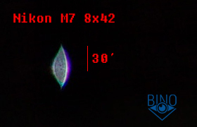 На оси ХА у M7 8x42 заметно слабее, чем у Nikon P7 8x30 или Vixen Foresta 8x32 Porro, по краю сильнее у M7. То есть ED-стекло в объективе явно есть, но среднего уровня (стоимости), так как у Sky Rover APO исправление на оси ещё лучше, чем у M7.