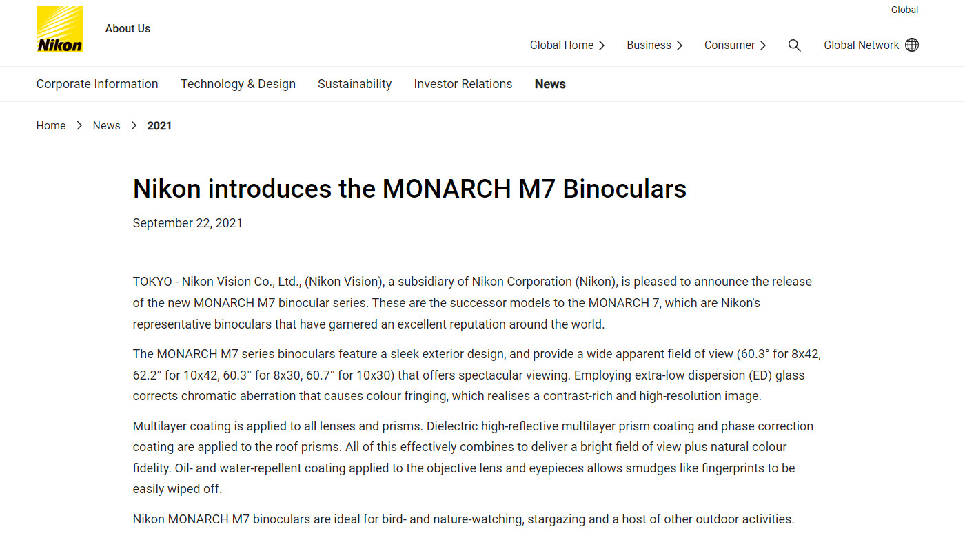 Nikon давно выпускает линейку биноклей Monarch 7, примерно с 2012 года. Обновление в виде M7 появилось в конце 2021 года, то есть спустя почти 10 лет после запуска. Предыдущую линейку Monarch 7 легко определить по названию, расположенному горизонтально на мосту одним блоком, у новой M7 название выполнено вертикально двумя раздельными блоками, как на картинке выше. Давайте знакомиться с новой линейкой, которой всего 2-3 года.