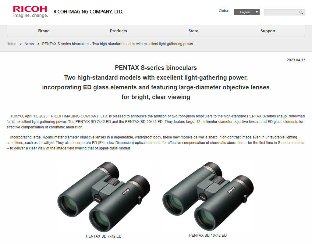 Бинокли Pentax серии S появились примерно в 2015 году, вторая буква в маркировке обозначает тип использованной призмы: D (Dach) - Руф призма, P (Porro) - Порро призма.