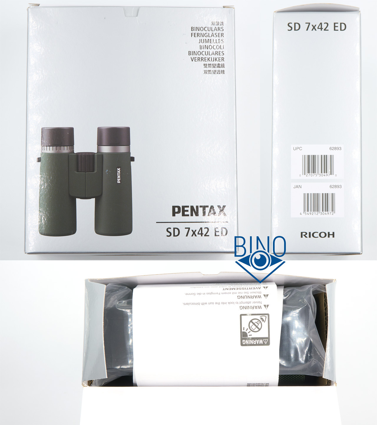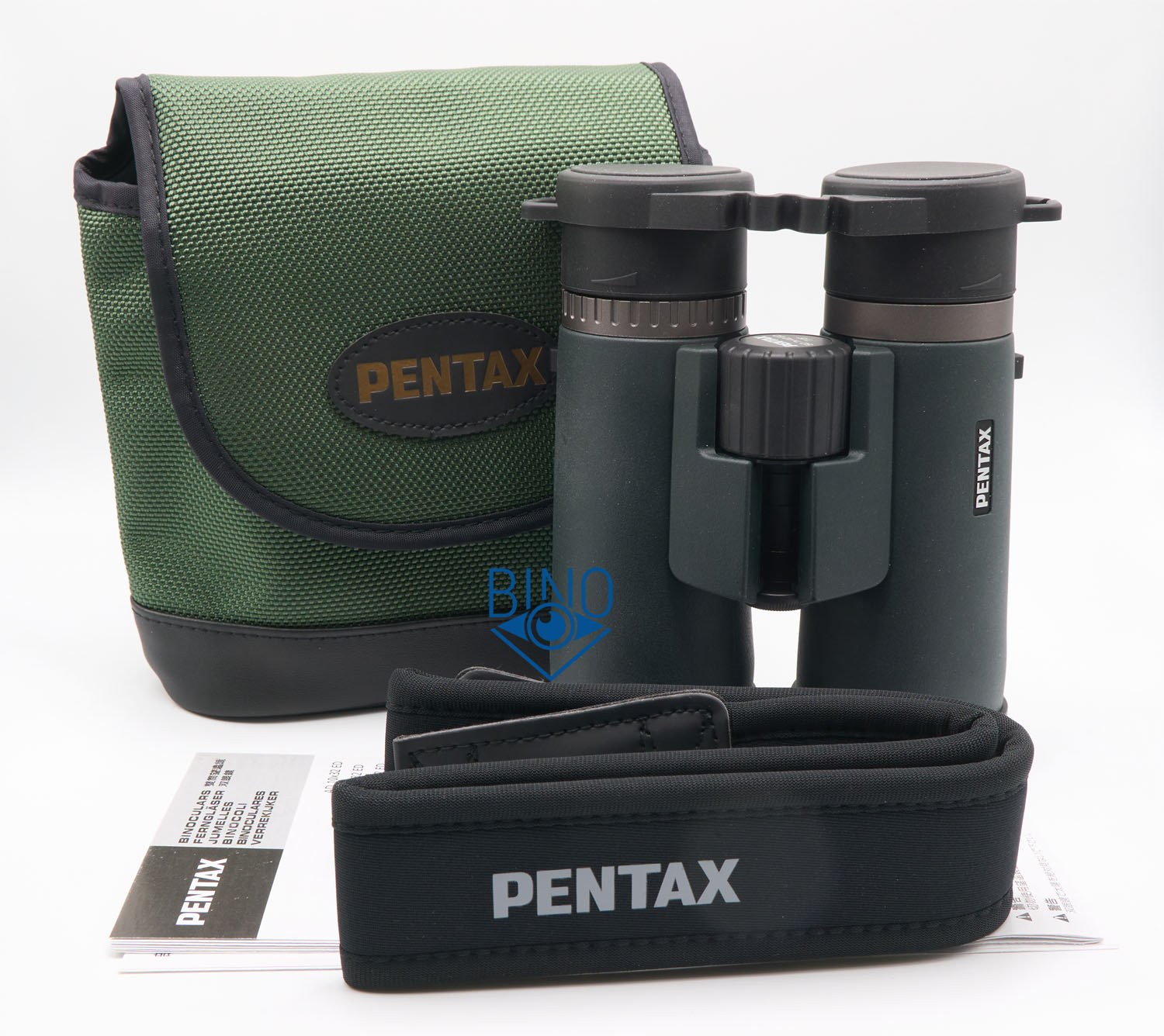 Комплект: бинокль, раздельные крышки на объективы, сдвоенная крышка на окуляры (рейнгард), нашейный ремень, чехол.