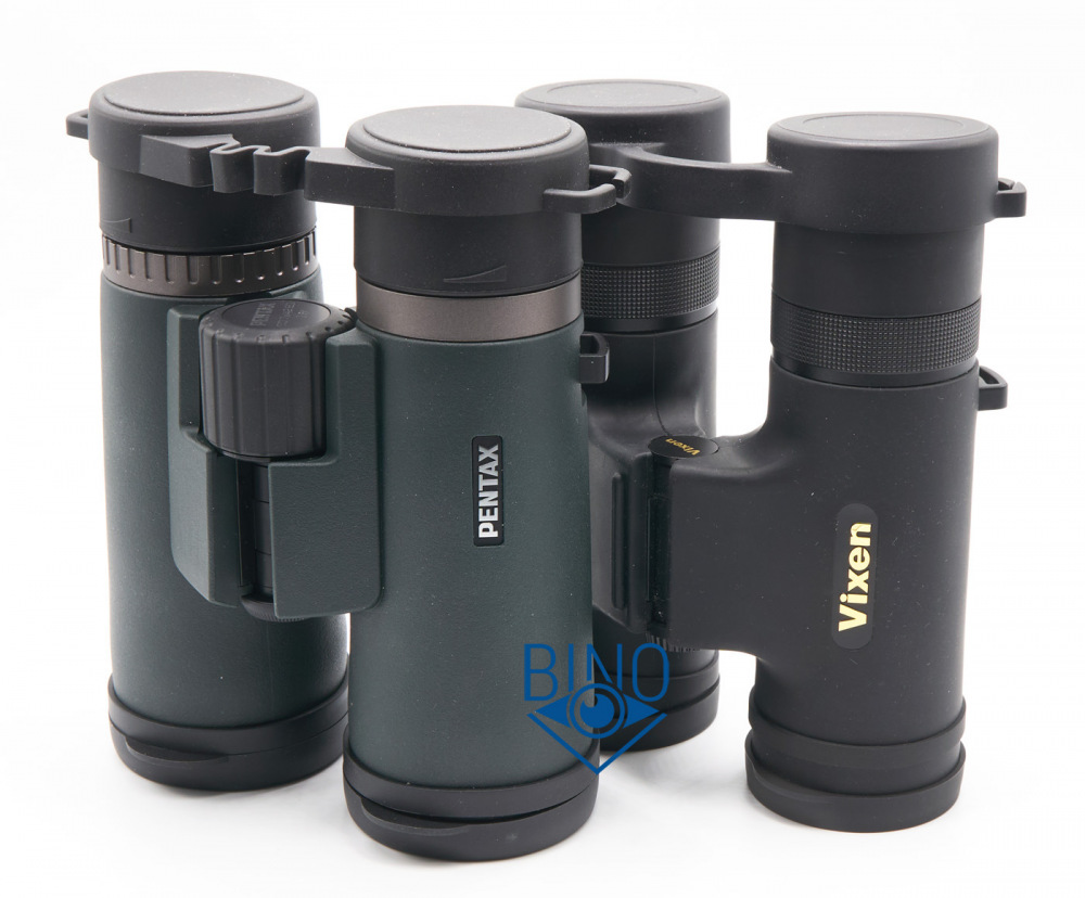 Габариты у бинокля средние, вполне в духе времени, ДхШхВ 148х118х65мм на МЗР=65мм. Ниже сравнение Pentax SD 7x42 ED и Vixen SG 6.5x32 по габаритам.