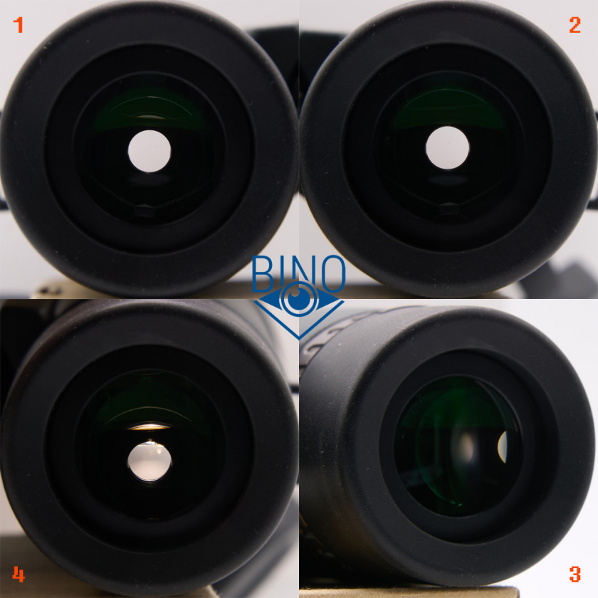 На фото выше (слева): 1 - выходной зрачок левого канала, 2 - вз правого канала, 3 - вз на краю (оценка виньетирования), 4 - имитация наблюдений в сторону Солнца (подсветил объектив сверху фонариком смартфона).
