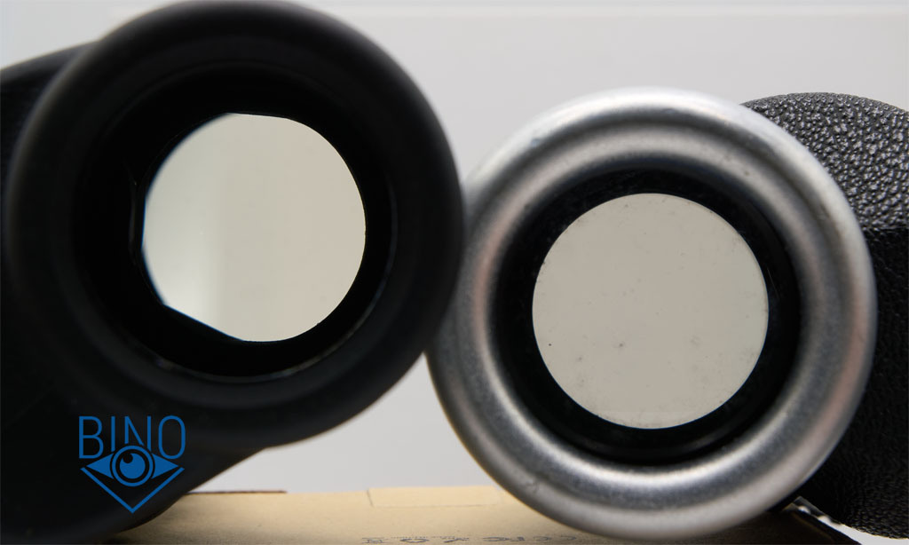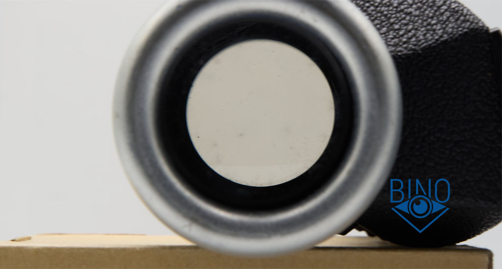 Глазная линза большого диаметра 25мм, плоская. Утоплена от края наглазника на 6,7мм по центру и по краю. Доступный вынос выходного зрачка (далее ВЗ) от края наглазника около 4мм. Полный вынос ВЗ от стекла получается под 11мм. На глазной линзе из-за отсутствия просветлений снаружи могут отражаться предметы, расположенные за наблюдателем, что немного отвлекает от наблюдений.