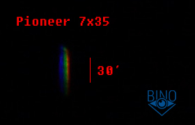 Хроматическая Аберрация (ХА) на оси у у Pioneer 7x35 на уровне Bausch Legacy 7x35, но каёмки слабой насыщенности, поэтому заметны меньше. Цвет у каёмок не совсем чистых цветов.