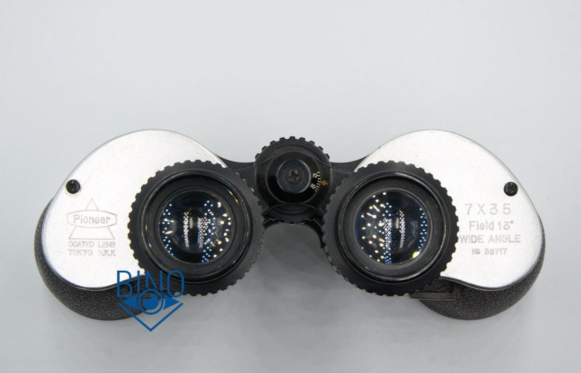 Схема объектива: склейка-дублет. Блики от (просветлений) оптики объектива яркие, в основном без окраса, две поверхности со слабым синеватым оттенком. От призмы яркие блики почти без окраса, возможно без просветлений. У бинокля оптика с частичными просветлениями (coated). Блики от оптики Pioneer ярче, чем у Bausch Legacy 7x35.