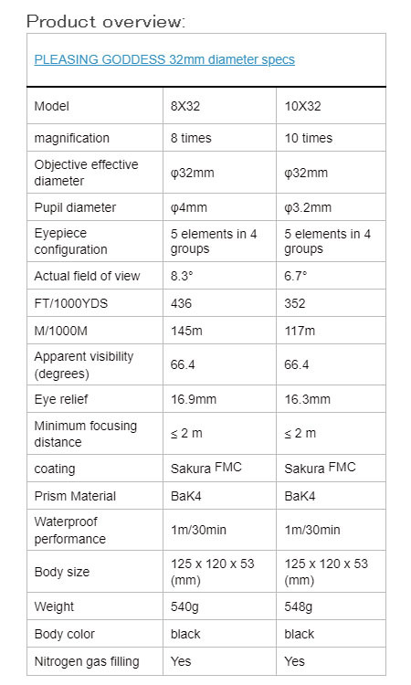 Если вы любите (или используете) бинокли с “тёплой” цветопередачей, то Goddess вам понравится. Он хорошо подойдёт на замену старому Порро биноклю из прошлого века. Габариты у Goddess умеренные, даже по текущим меркам, но бинокль хваткий, картинка не дрожит заметно при наблюдениях, тряска на уровне более крупного Zeiss Conquest HD 10x32, и немного сравнима с компактным Kenko Avantar II 8x32.