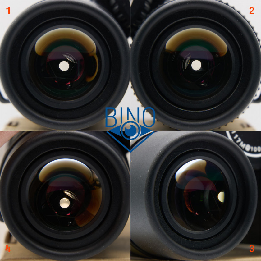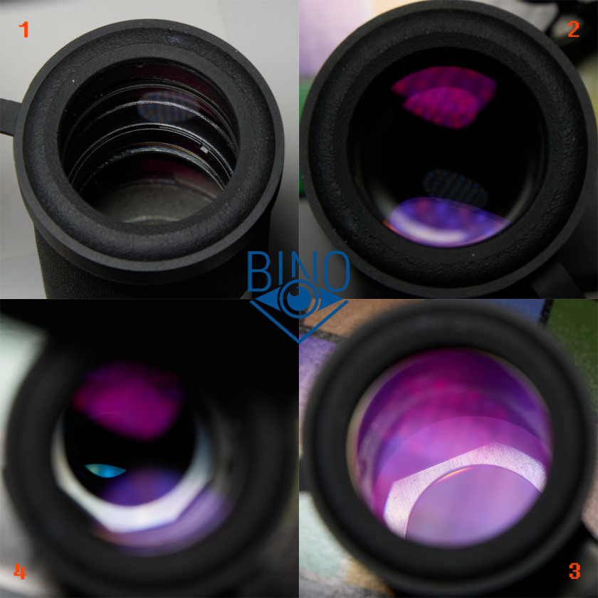 На фото выше (слева): 1 - выходной зрачок левого канала, 2 - вз правого канала, 3 - вз на краю (оценка виньетирования), 4 - имитация наблюдений в сторону Солнца (подсветил объектив сверху фонариком смартфона).