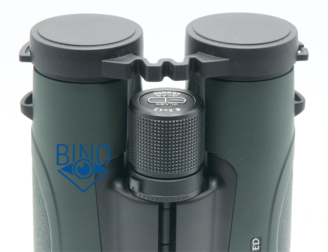 При вращении кольца правый окуляр остаётся неподвижным, коррекция осуществляется перемещением правой фокусировочной линзы внутри тубуса. Разметка нуля на основании кольца ощущается плохо, выставить ноль в темноте на ощупь не получится.