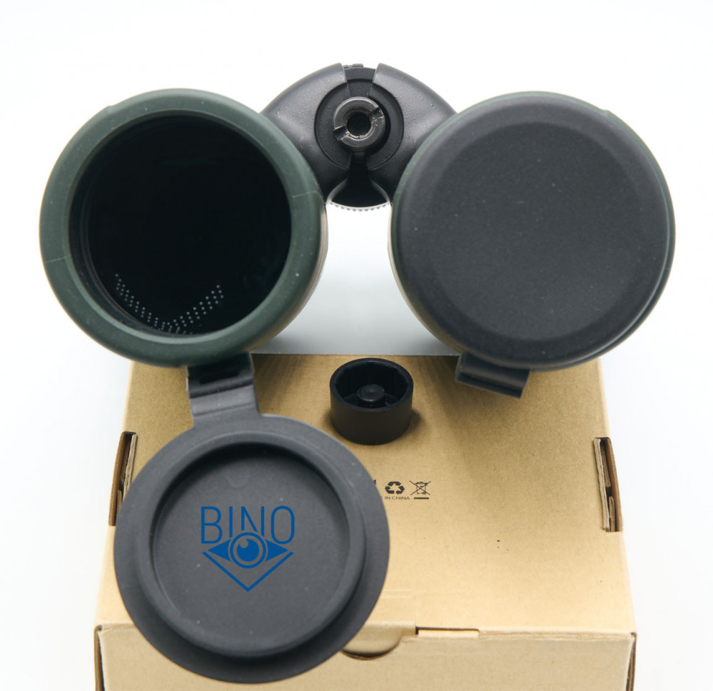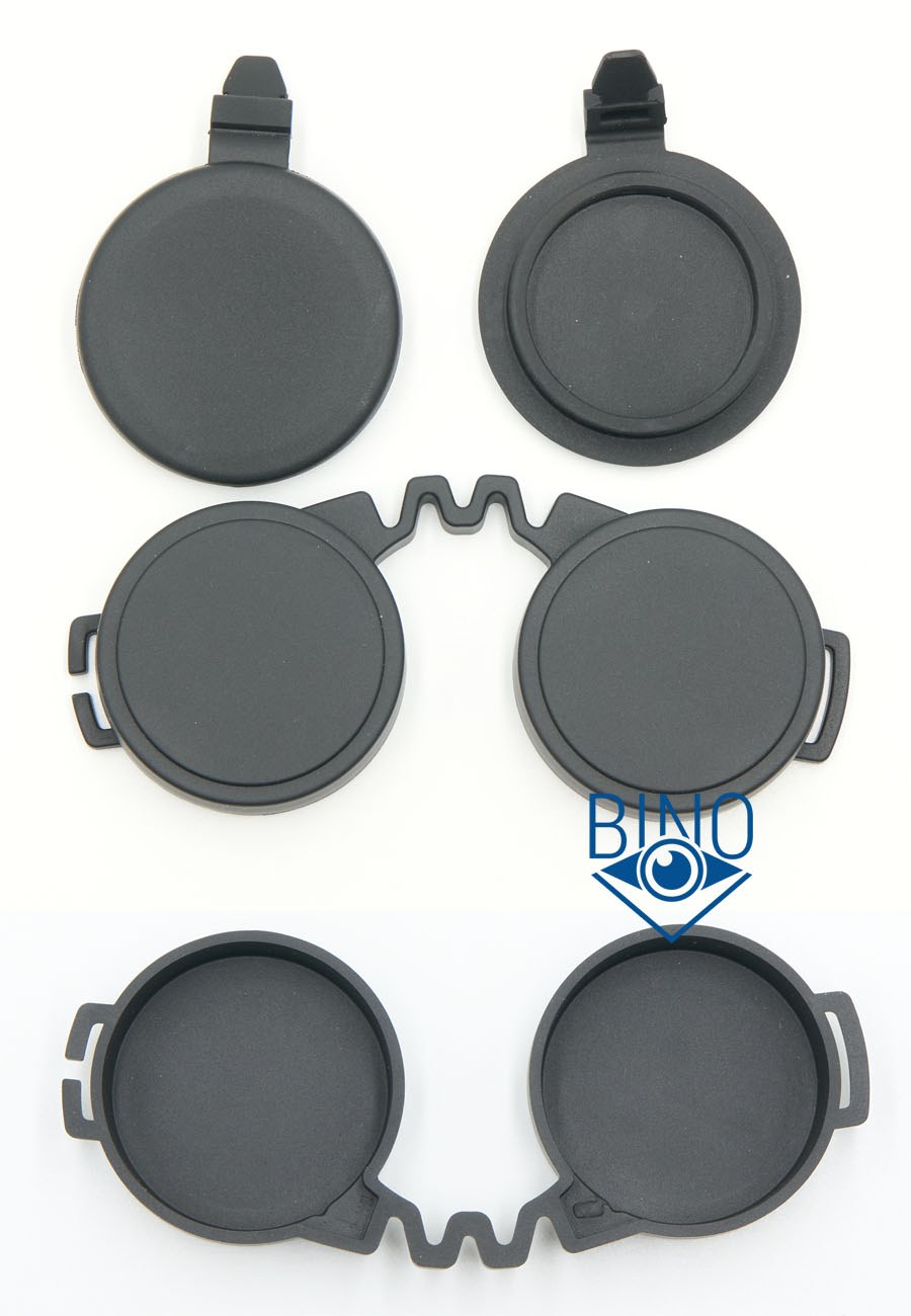 Крышки на объективы вкладные, изготовлены из резины средней жёсткости. Тонкие полоски, на которых они держатся, не очень эластичные, крышки чуть зависают в своём положении при открытии. Крышки не очень хорошо держатся внутри тубусов, сами открываются при задевании и не плотно прилегают.