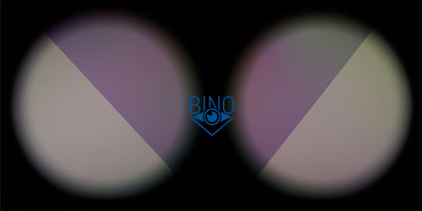 Тест с поляризационным фильтром на просвет через объективы на монитор показал перепад в яркости между половинками апертуры небольшого уровня, сравнимо или чуть сильнее (заметнее), чем у Zeiss Conquest HD 10x32, сильнее (заметнее), чем у SRBC 10x50. На фото ниже демонстрация перепада слева через правый канал, справа через левый: