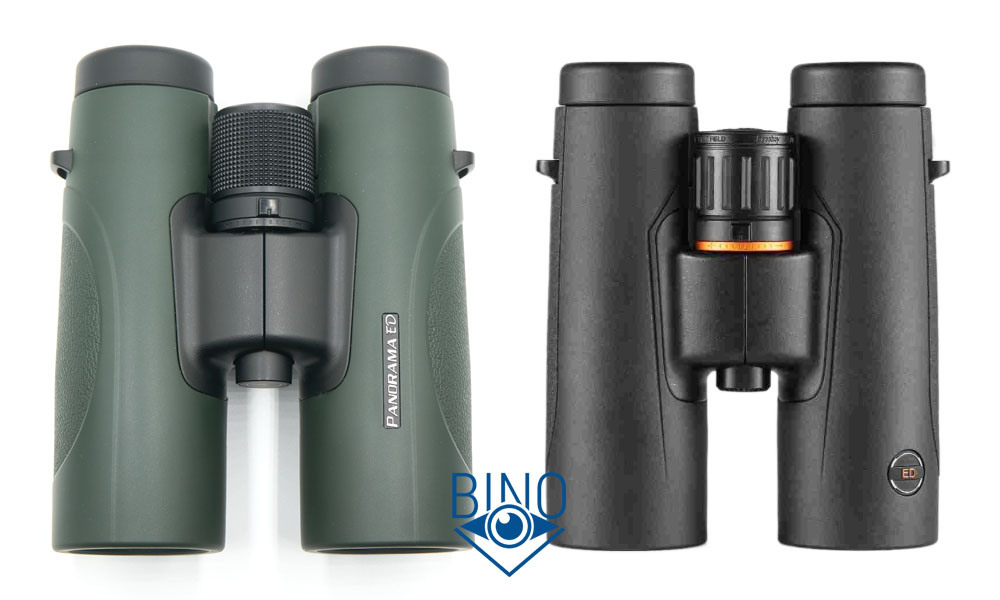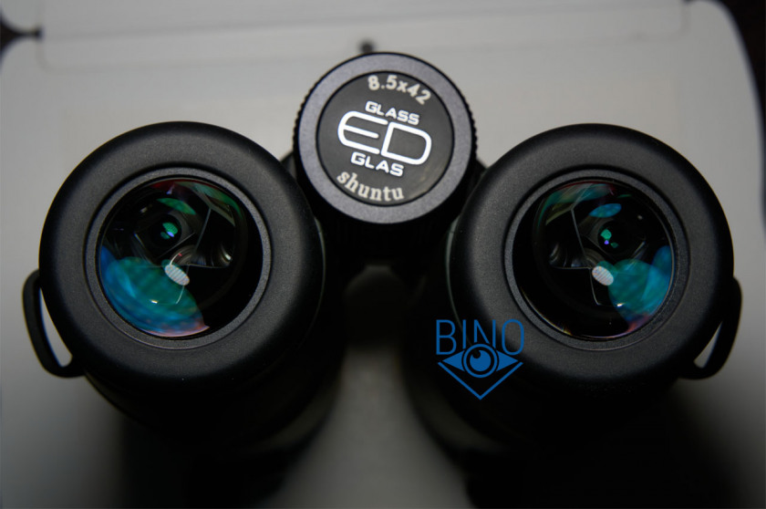Если хочется оптику с гарантийным обслуживанием, то в РФ есть официальные дилеры марки Eyeskey, их сайты легко найти в Интернете. Мне удалось сравнить в магазине Shuntu Panorama ED 8.5x42 и Eyeskey SkyPower 10x42 - в наличии была только 10-ка. Бинокли этих марок схожи по характеристикам и внешнему виду, именно эту модель легко опознать по колесу диоптрийной коррекции, расположенному под колесом фокусера. Бинокли отличаются покрытием колеса, ход фокусера был чуть туже у SkyPower. Обрезинка обоих биноклей толстая, немного отличается рельефом. Ещё из внешних отличий надо отметить 3-х позиционные наглазники у SkyPower, в то время, как у Panorama наглазники делают только один фиксированный шаг наружу (2-х позиционные). Экземпляр от Eyeskey показался чуть более аккуратно собранным, у него было чуть лучше выполнено матирование внутри тубусов и прокрашена призменная диафрагма. Также при смене дистанции фокусировки обе линзы в SkyPower двигались синхронно. Больше отличий, кроме кратности, я не увидел, по оптике это были два одинаковых бинокля с хорошей коррекцией ХА на оси и отличным исправлением края поля.
