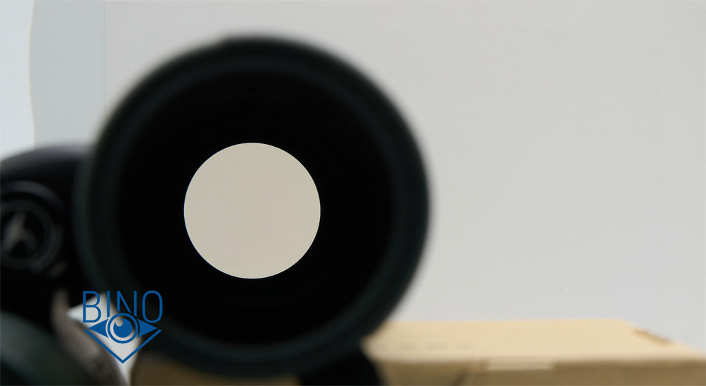 Выходной зрачок диаметром около 4,95мм, не совсем круглый. Чуть сплюснут по горизонтали, по замеру получился чуть крупнее в правом канале. Затенение вокруг ВЗ среднее, есть небольшое бликование на внутренностях тубусов и переотражения. Кратность бинокля по отношению апертуры к диаметру ВЗ получилась 40/4,95 = 8х.