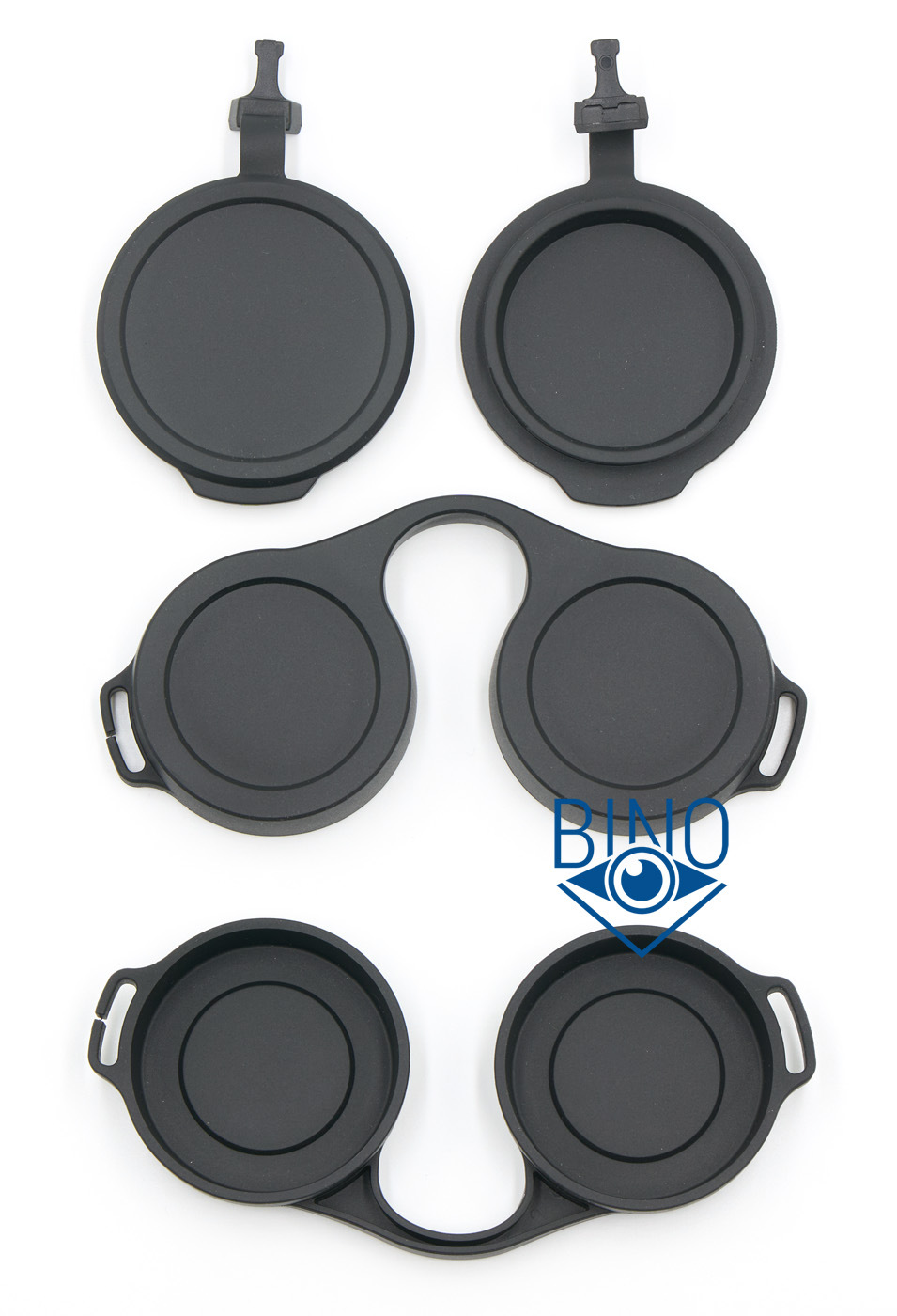 Крышки на объективы резиновые, мягкие, внутреннего зацепления. Легко вкладываются в тубусы и также легко вынимаются. Иногда сами открываются при зацеплении выступа сверху или при вынимании бинокля из сумки. Крышки закреплены на тыльной стороне тубусов и висят на полоске мягкой резины, которая почти не дубеет на улице при +4С.
