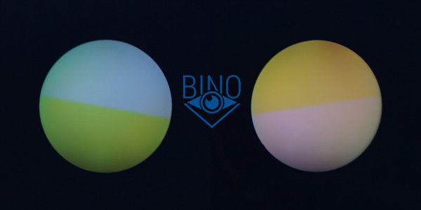Тест с поляризационным фильтром на просвет через объективы на монитор показал слабый перепад в яркости между половинками апертуры. На фото ниже демонстрация перепада слева через правый канал, справа через левый:
