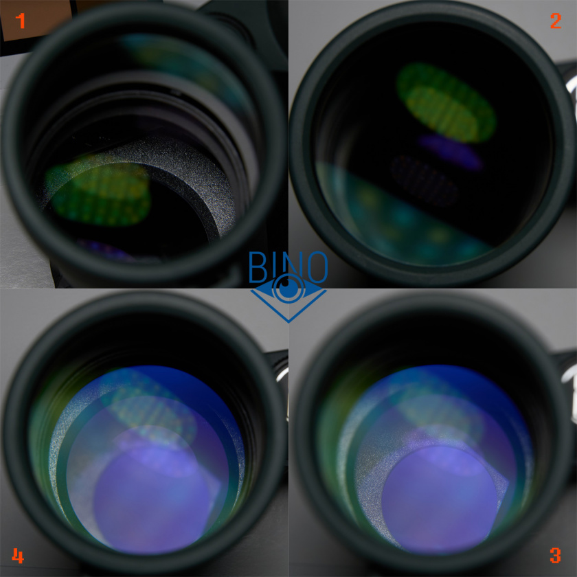 На фото выше (слева): 1 - выходной зрачок левого канала, 2 - вз правого канала, 3 - вз на краю (оценка виньетирования), 4 - имитация наблюдений в сторону Солнца (подсветил объектив сверху фонариком смартфона).