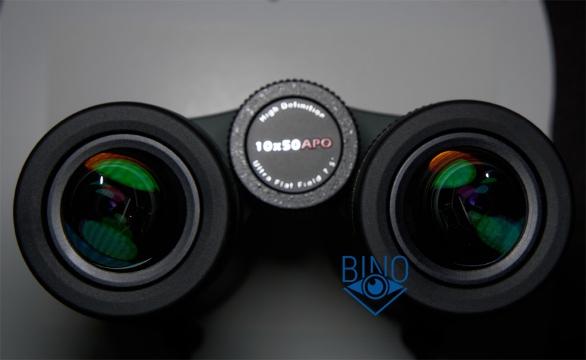 Хроматическая Аберрация (ХА) на оси у бинокля слабая, по краю среднего уровня. ED-стекло в объективе явно есть и достаточно хорошее. На оси ХА у SRBC 10x50 заметно меньше, чем у Порро бинокля Delta Optical Titanium 10x42 (с обычными стёклами), и меньше, чем у всех 10х биноклей, что были на руках: Zeiss Conquest HD 10x32, Tract Toric 10x42, GPO Passion 10x56. Вполне верится в заявленное Double ED, в окуляре может быть использована линза из Лантана, которая “разгоняет” окулярное поле и частично правит ХА на оси.