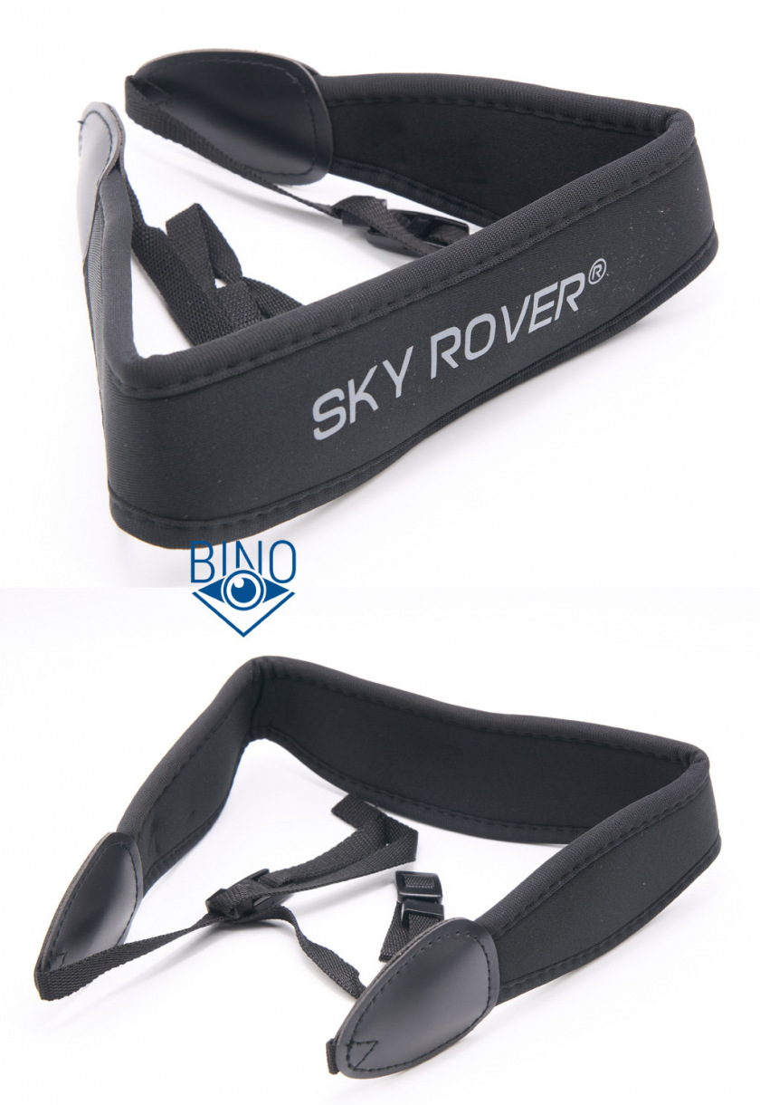 Нашейный ремешок неопреновый, точно такой же, как у 8х42 версии. Он хорошо тянется, шириной 52мм по центру в самой широкой части, толщиной около 5-6мм и длиной 50см без тесёмок. Тесёмки легко продеваются сквозь клипсы-фиксаторы. От ремешка был слабый "резиновый" запах. Этого ремешка достаточно для разгрузки шеи при ношении такого увесистого бинокля весом 1015гр, но он всё равно хорошо чувствуется шеей и грудью при ходьбе.