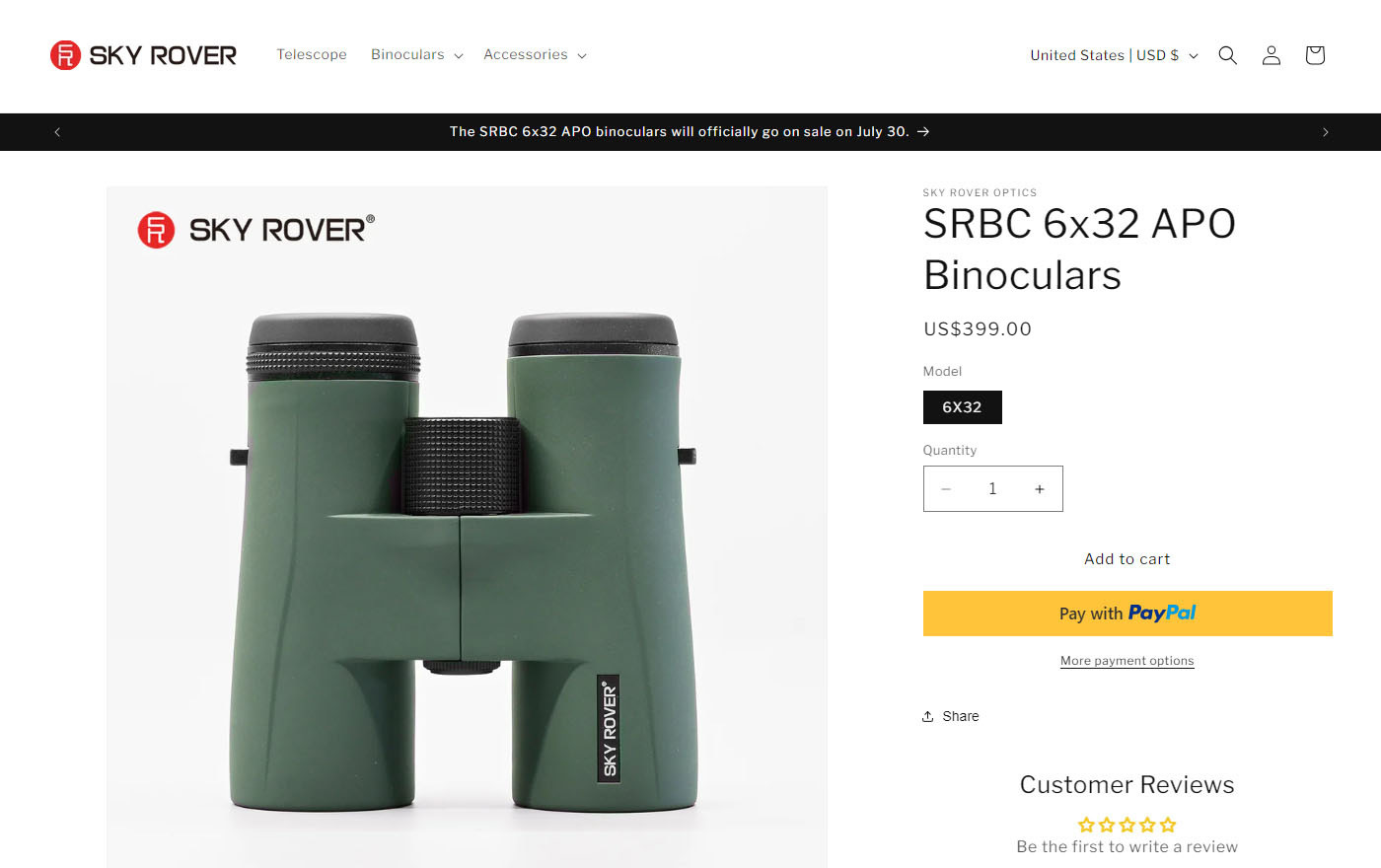 Компания Sky Rover выпустила отличный обзорный бинокль за вполне вменяемую цену, особенно, если учесть его стоимость на внутреннем рынке. Для остальных покупателей цена выше, плюс накладные расходы могут заметно увеличить итоговую стоимость (доставка + пошлины). По использованным материалам бинокль почти сравним по уровню с более дорогим Kowa BDII 6.5x32, как-будто под него выполнены цветовые решения, и чуть уступает в тактильных ощущениях Vixen SG 6.5x32.