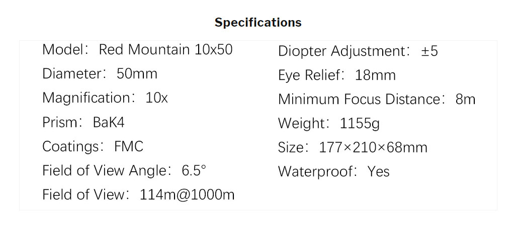 Похожую (внешне и по параметрам) линейку биноклей Comet Hunter я давно заметил у Sightron, Red Mountain у Sky Rover появился позже на сайте. Видимо, United Optics начал производить эти бинокли для Sightron, а потом решил выпустить немного изменённую модель 10х50 под своим брендом. Comet Hunter отличается от Red Mountain в лучшую сторону по оптике, ниже остановлюсь подробнее.