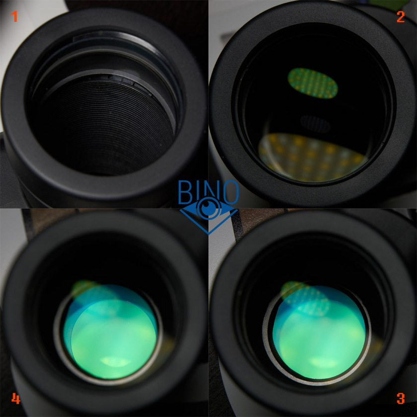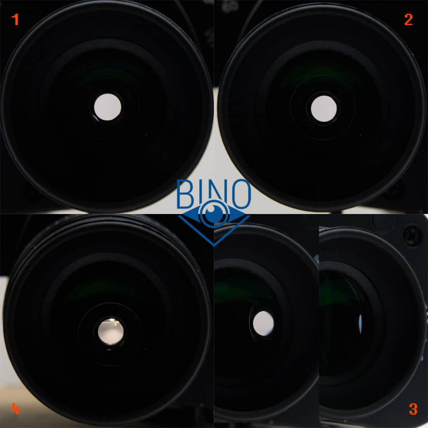 На фото выше (слева): 1 - выходной зрачок левого канала, 2 - вз правого канала, 3 - вз на краю (оценка виньетирования), 4 - имитация наблюдений в сторону Солнца (подсветил объектив сверху фонариком смартфона).