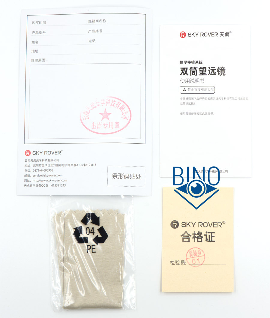 Комплект: бинокль, раздельные крышки на объективы, сдвоенная крышка на окуляры (рейнгард), нашейный ремень, сумка + ремень.