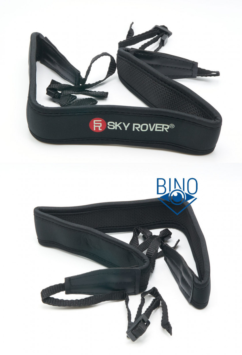 Нашейный ремешок неопреновый, простой по качеству, шириной почти 40мм и толщиной 5мм, покрыт тканью только с наружной стороны. Он нормально тянется, но не подходит для разгрузки шеи от веса этого тяжёлого бинокля (почти 1,2кг). Зимой недолго носить бинокль, заправив ремешок за воротник куртки ещё можно, для летнего использования очень желательно использовать ремешок шире. Хотя бинокль, в силу своих габаритов, плохо подходит для использования на ремешке, на мой взгляд.